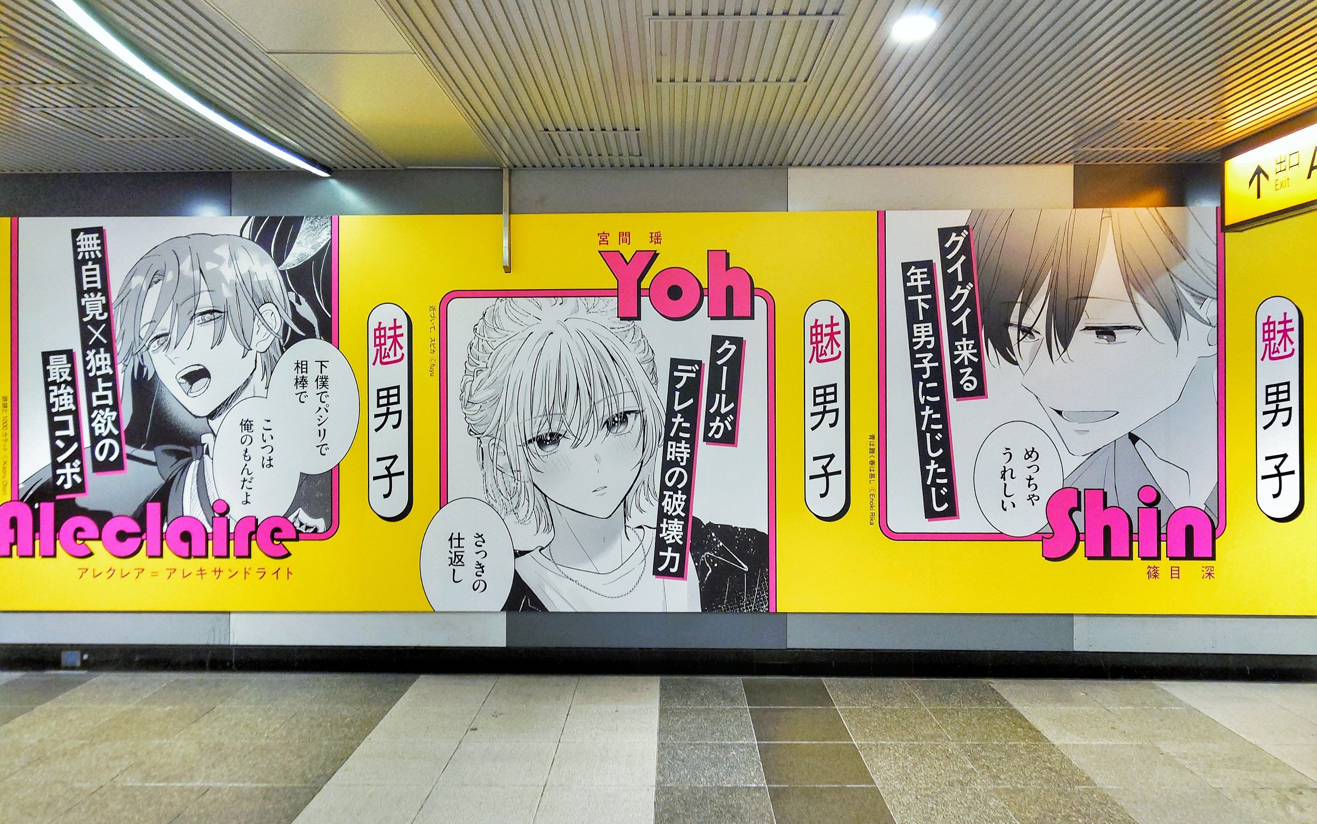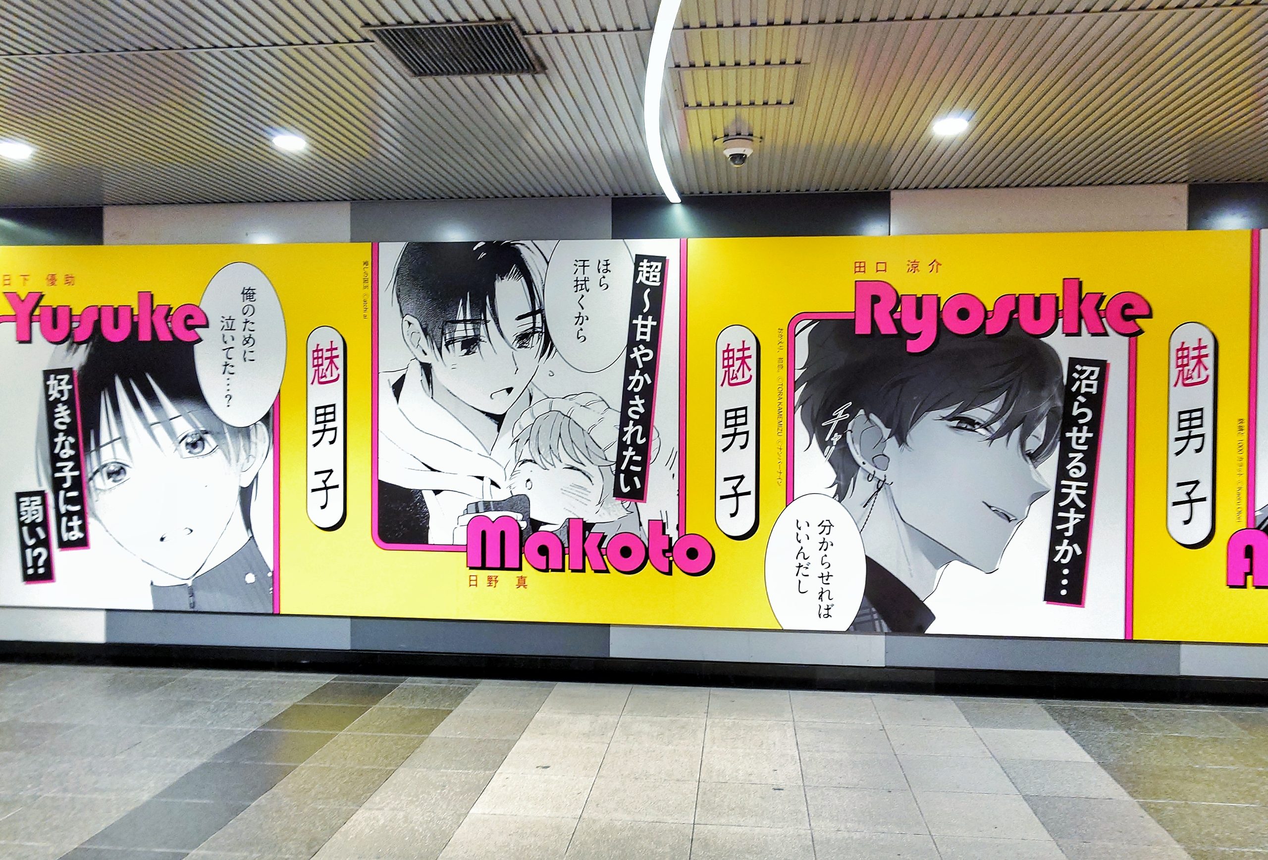 KADOKAWAのコミック誌「シルフ」による「魅男子(みだんし)」および「NEXT魅男子」の大型壁面広告です。各作品のキャラクターとセリフを並べたビジュアルが掲出されました。