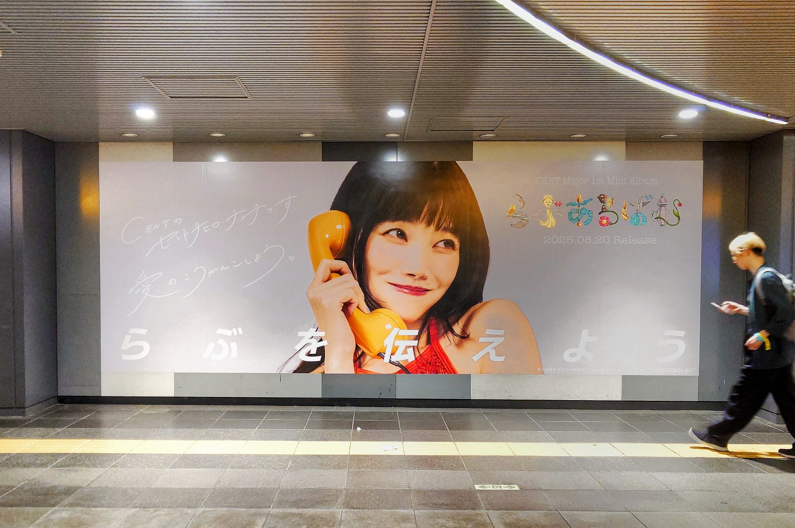 渋谷駅に掲出された、CENT(セントチヒロ・チッチ)さんのメジャー1stミニアルバム「らぶあるばむ」のリリース告知広告です。