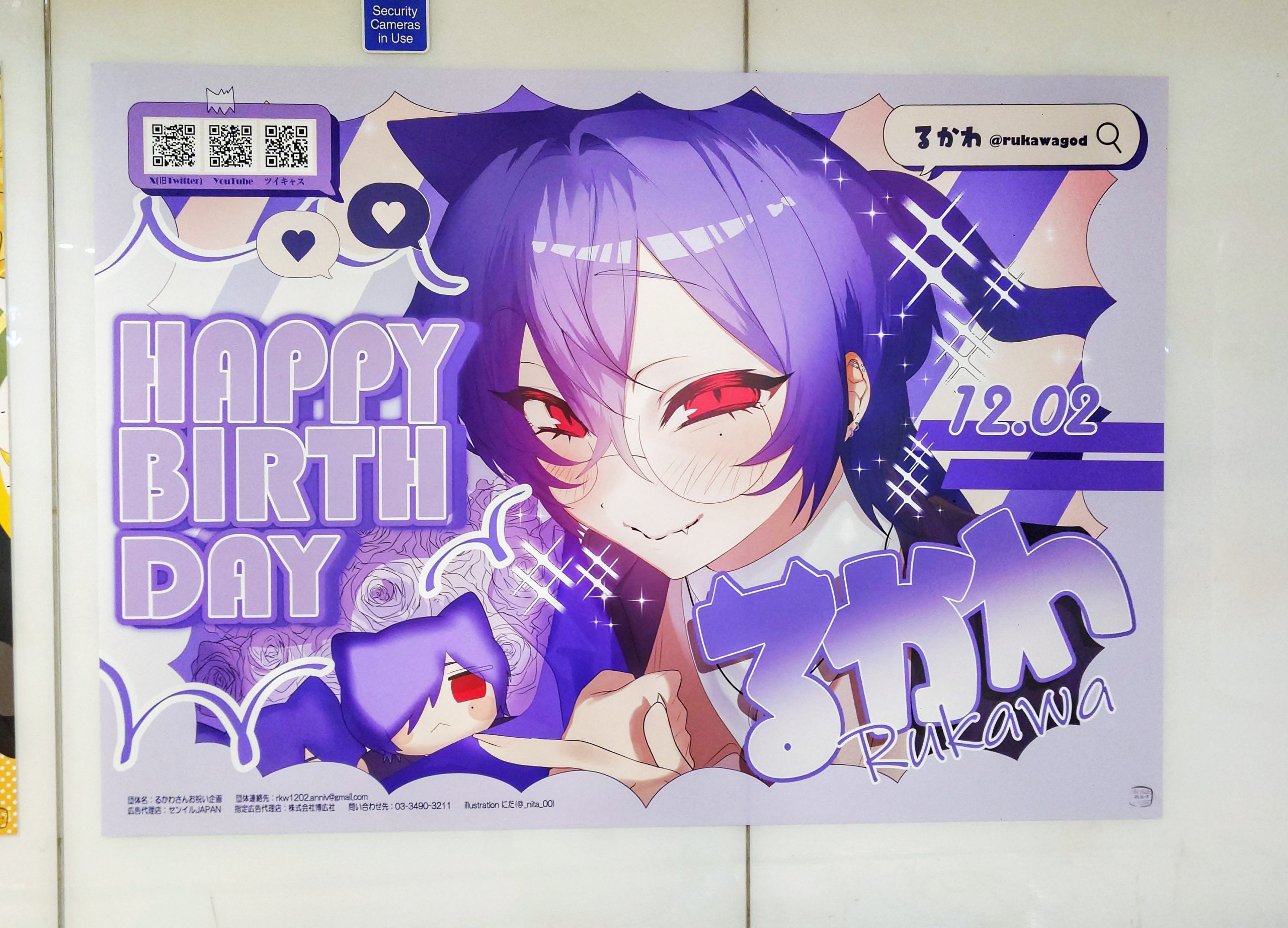 主にツイキャスやYouTubeで活動する配信者、るかわさんの12月2日の誕生日を祝う応援広告が掲出されていました。